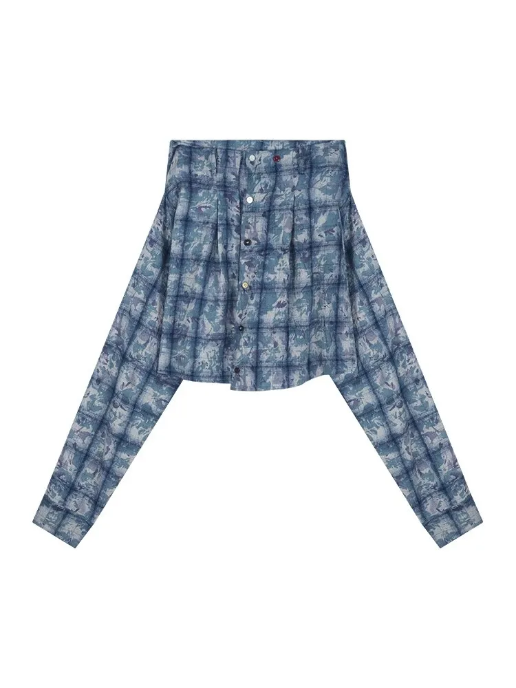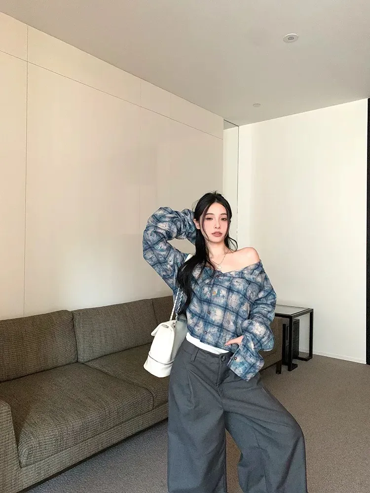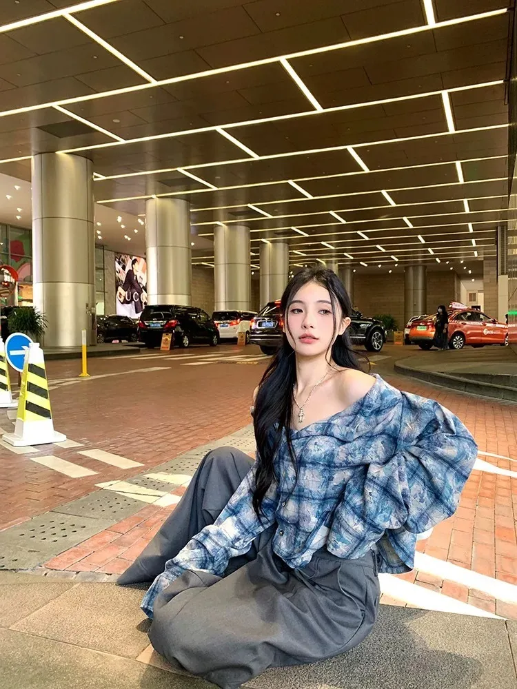 一字領格紋襯衫