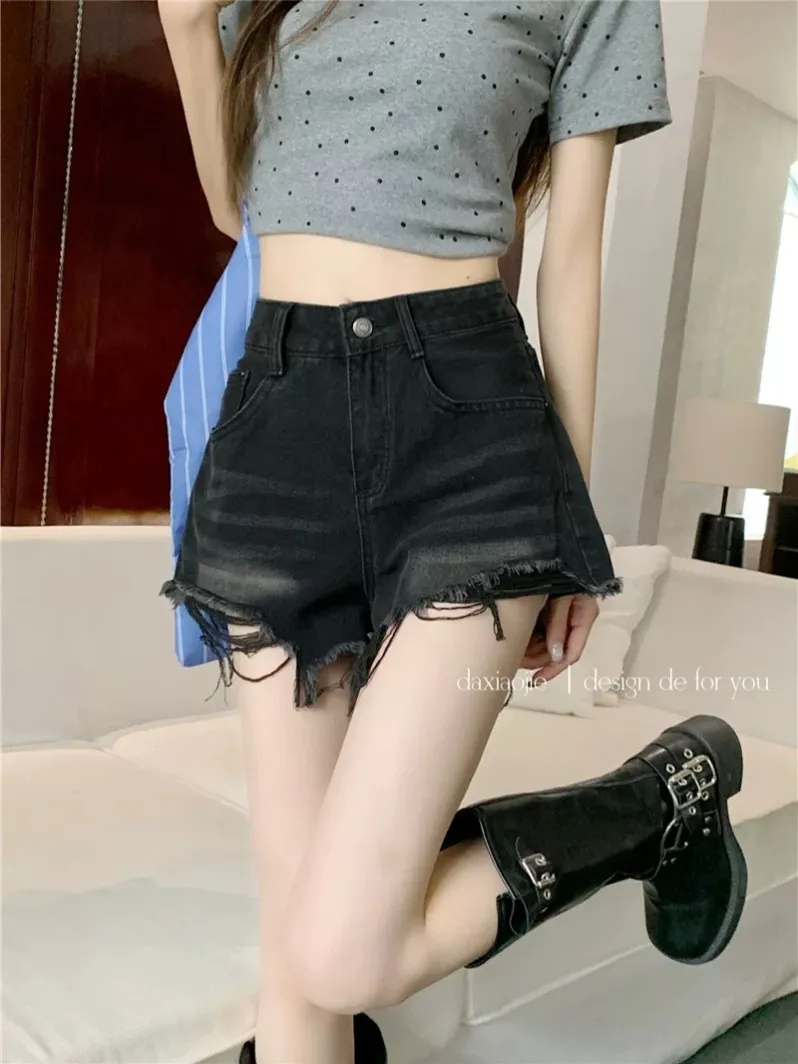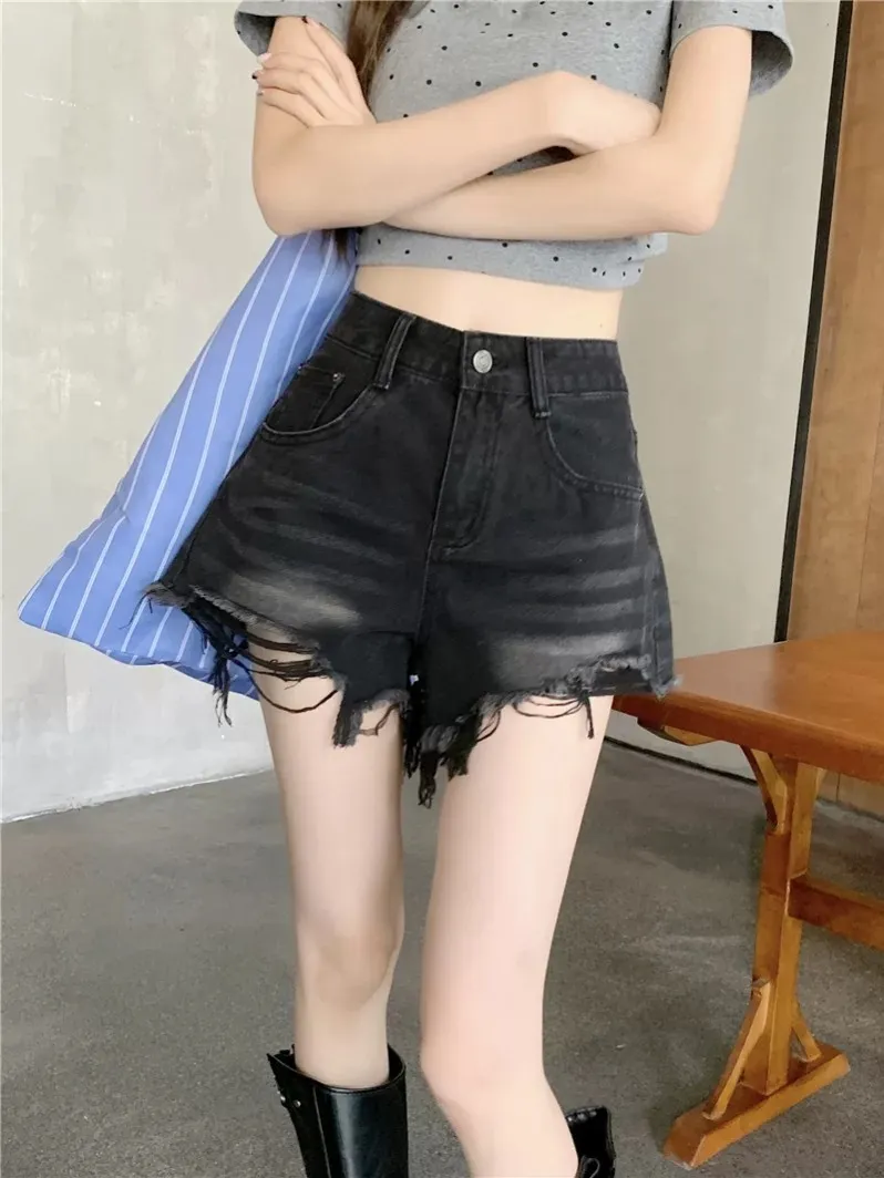 高腰刷毛邊短褲
