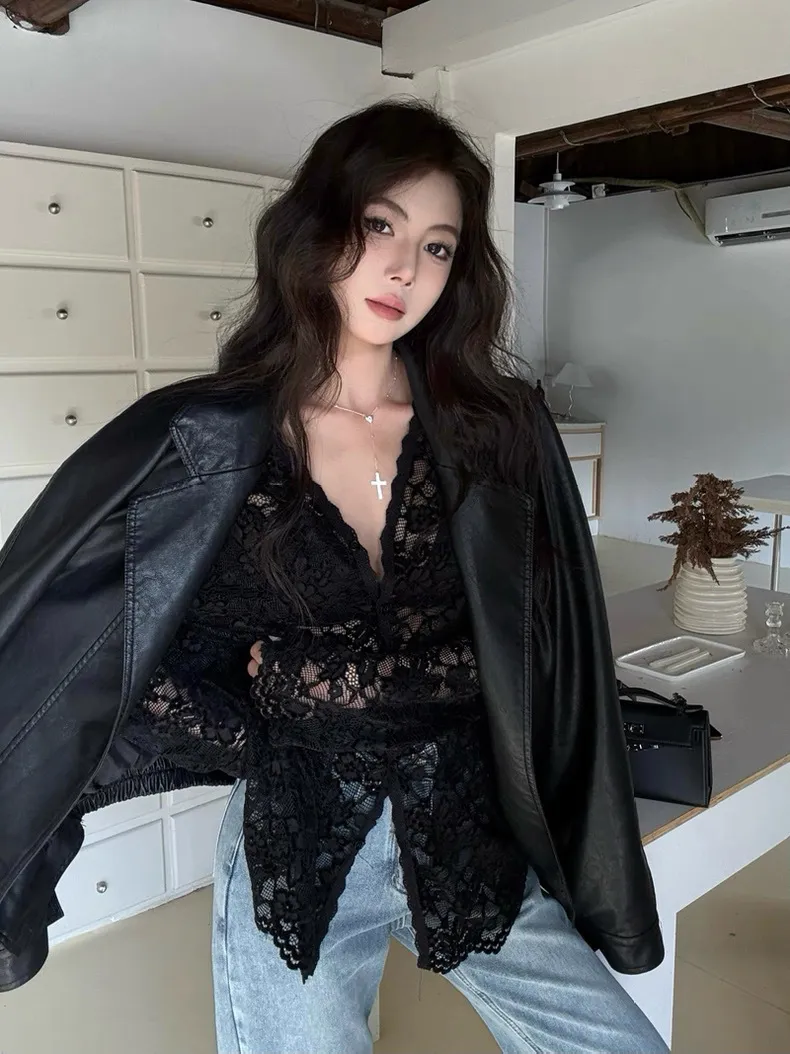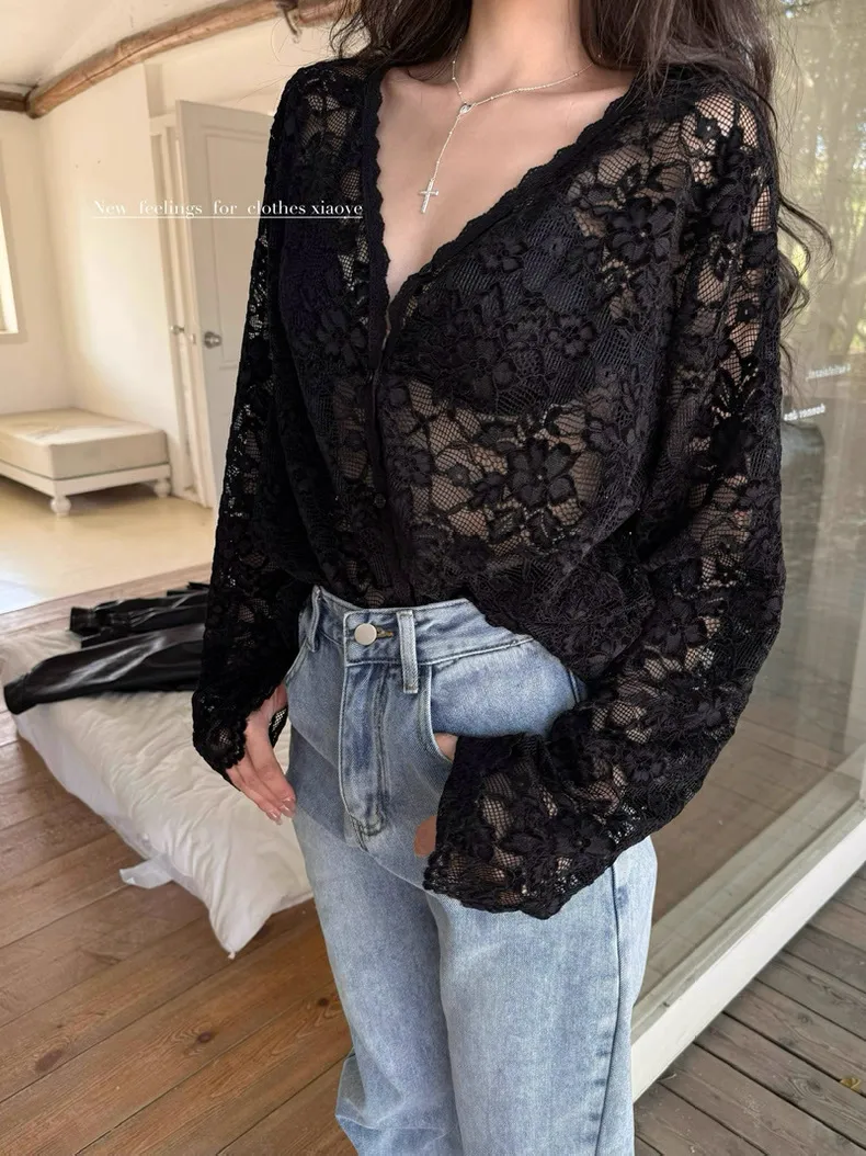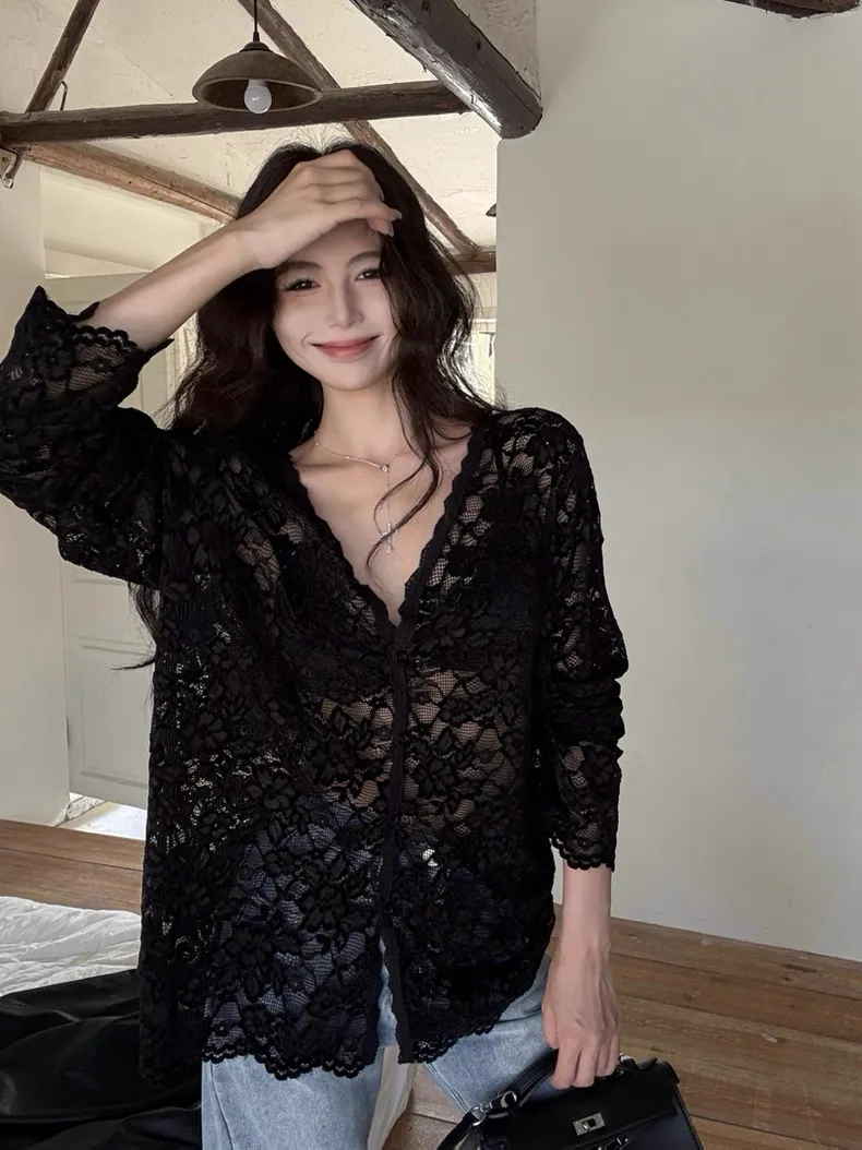 蕾絲微透上衣
