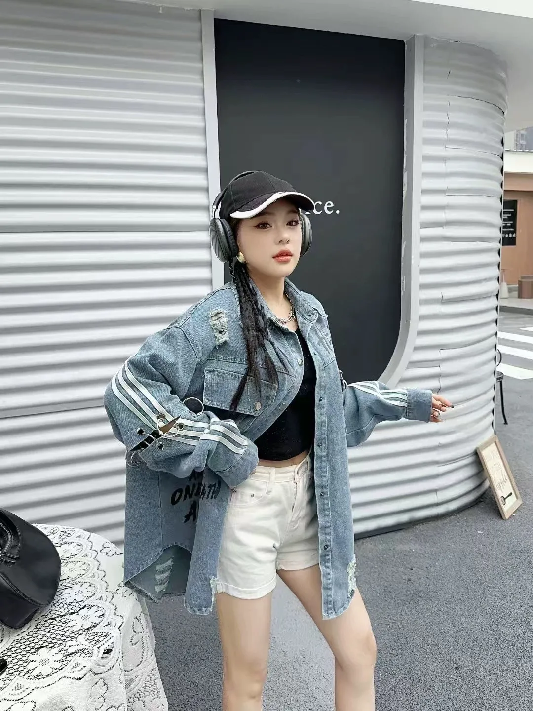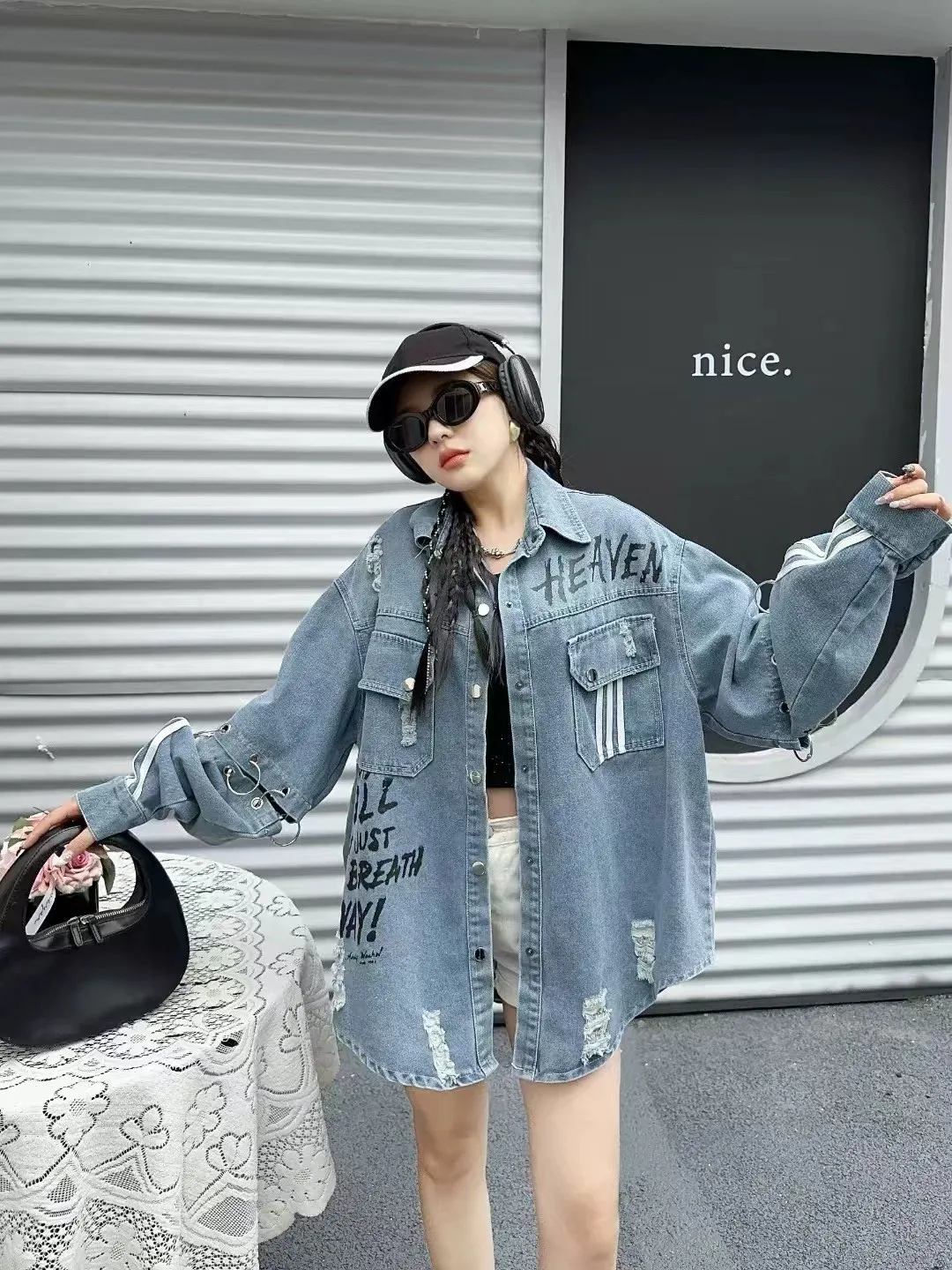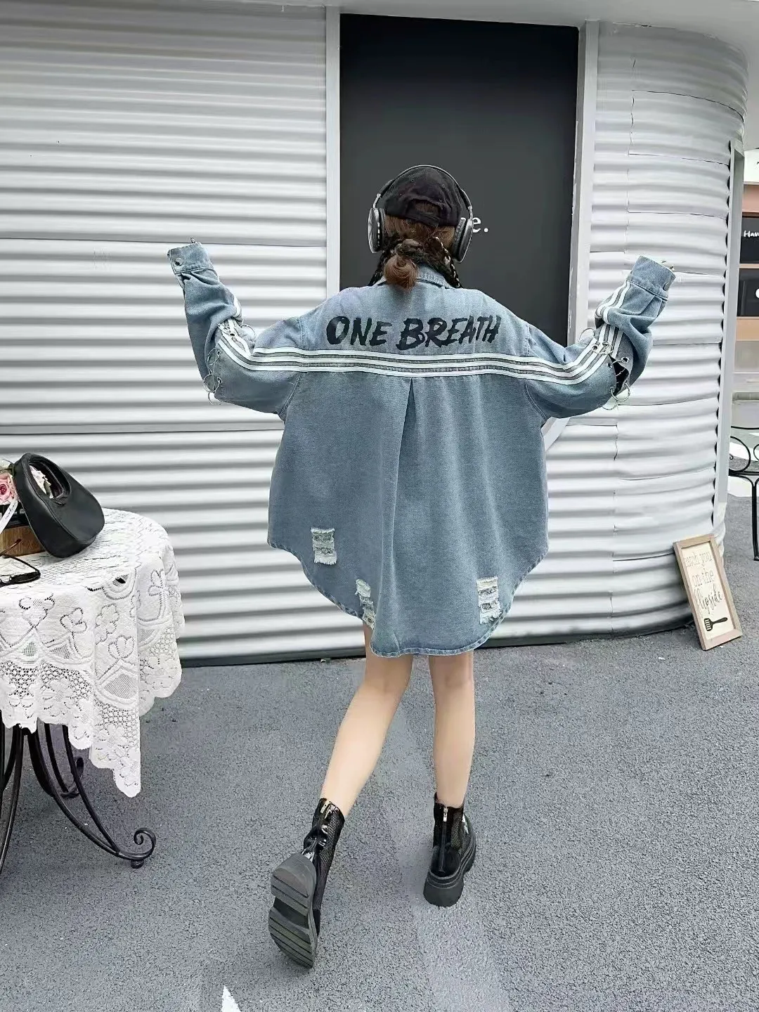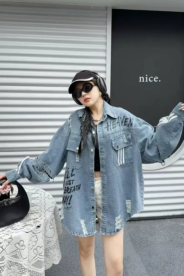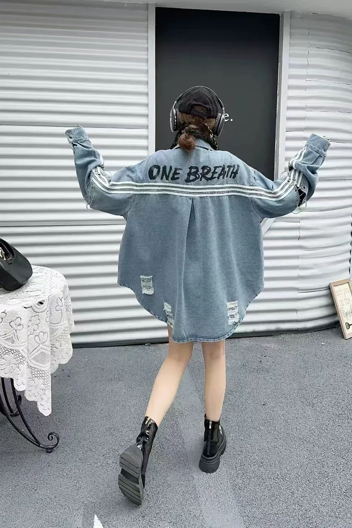 設計感寬鬆牛仔襯衫