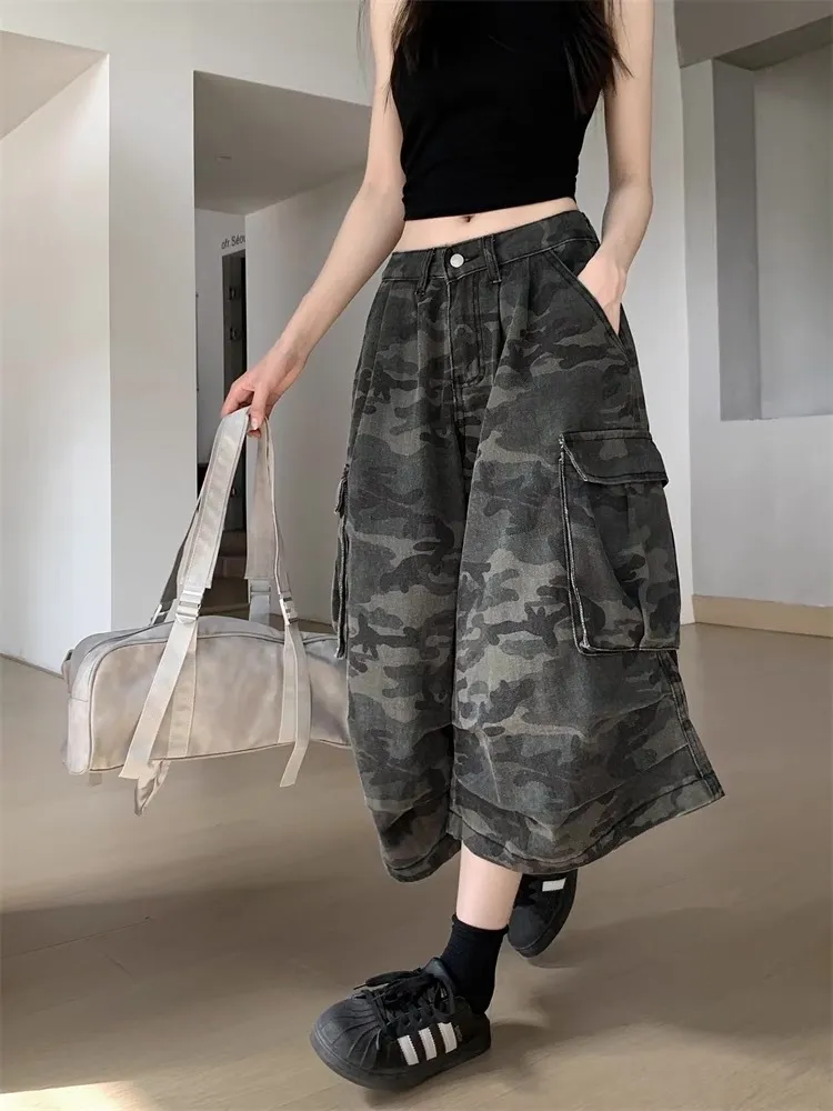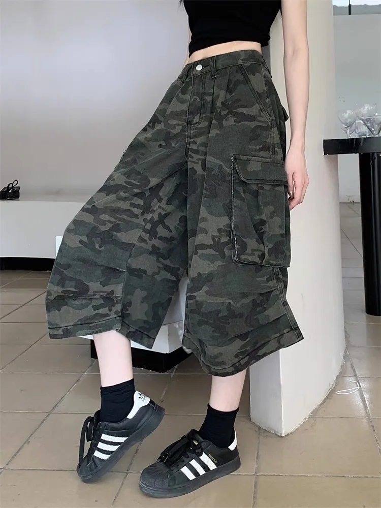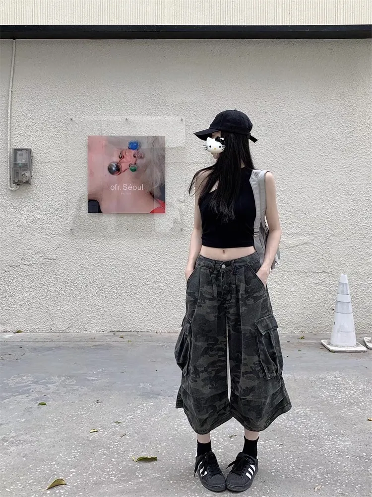 迷彩工裝寬腿褲